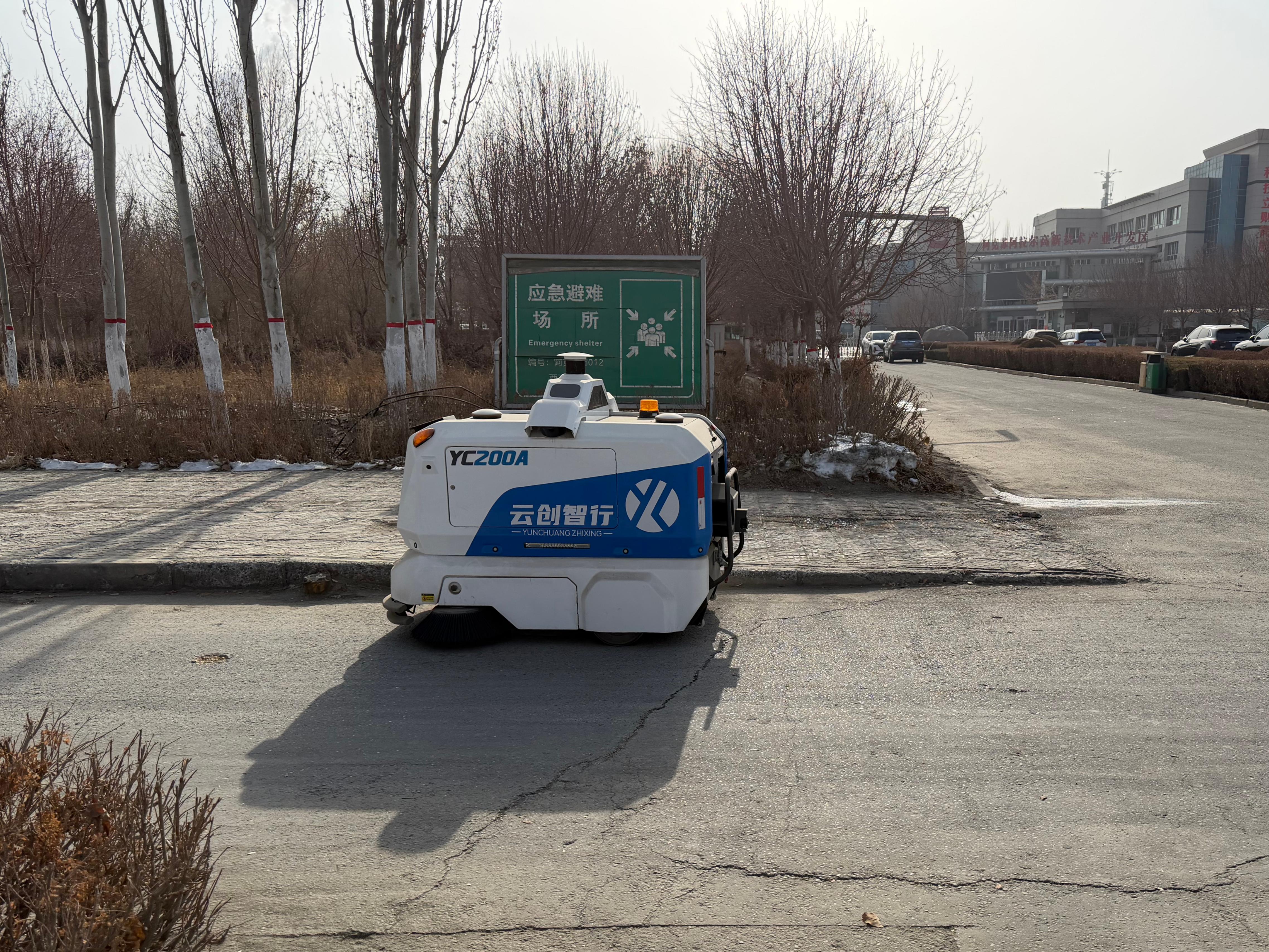 最近,该区引入云创智行全系无人环卫解决方案,组建由YC-200、YC-200 Pro及全自动YC-800组成的无人环卫车队,负责西工业园区管委会及周边市政道路的智慧清扫作业,项目覆盖无人清扫市政道路近11公里,总面积突破7万平方米,这也标志着云创智行在西北地区首次实现编队化落地应用。